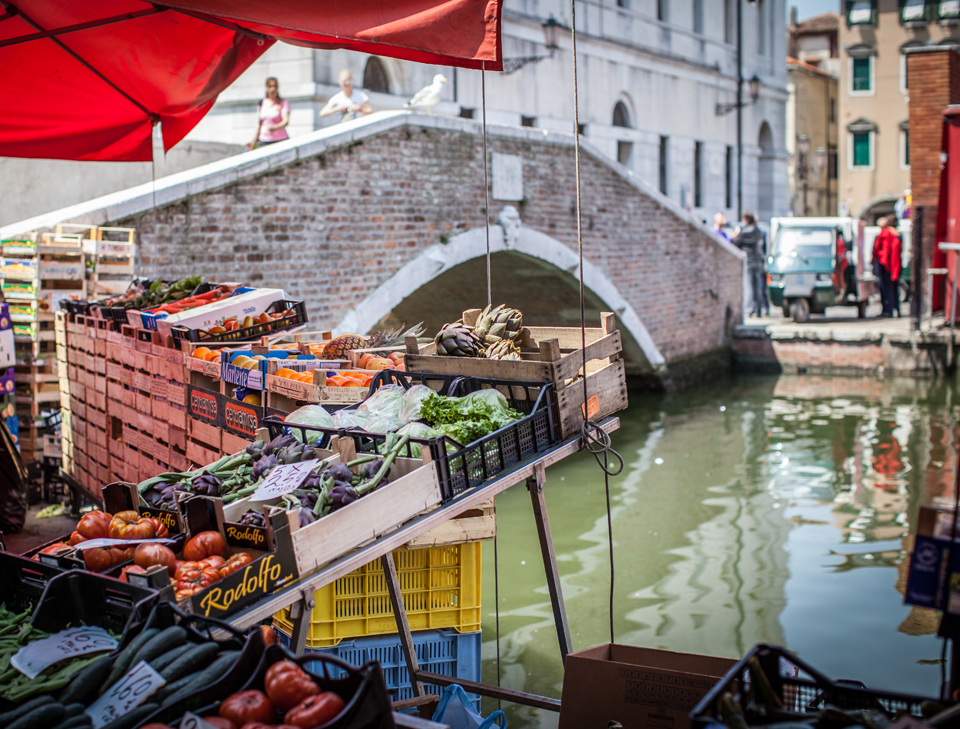 All along this canal, across from the pescheria, the shops spill out onto the fondamenta to create a bustling street-market atmosphere.