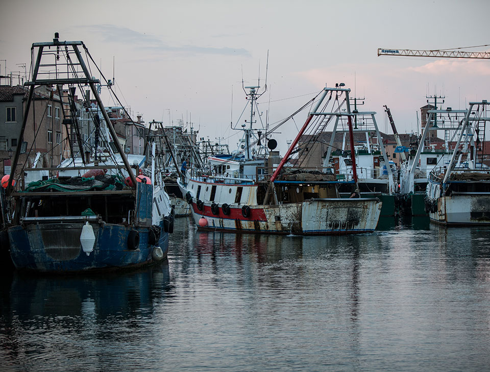 If you stand on the fondamenta or on the bridge when the fleet comes in, you can watch the spectacle of these big trawlers manoeuvring in this tight space as they tie up to off-load their catch at the wholesale fish market.