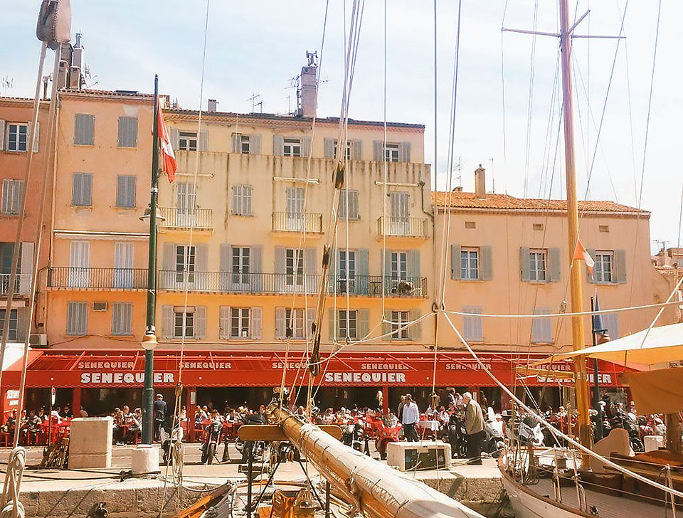 This café on the harbour front is a SanTropez insititution, easily recognised by its distinctive all-red décor. It started as a patisserie on the square behind, specialising in nougat which they still make today.