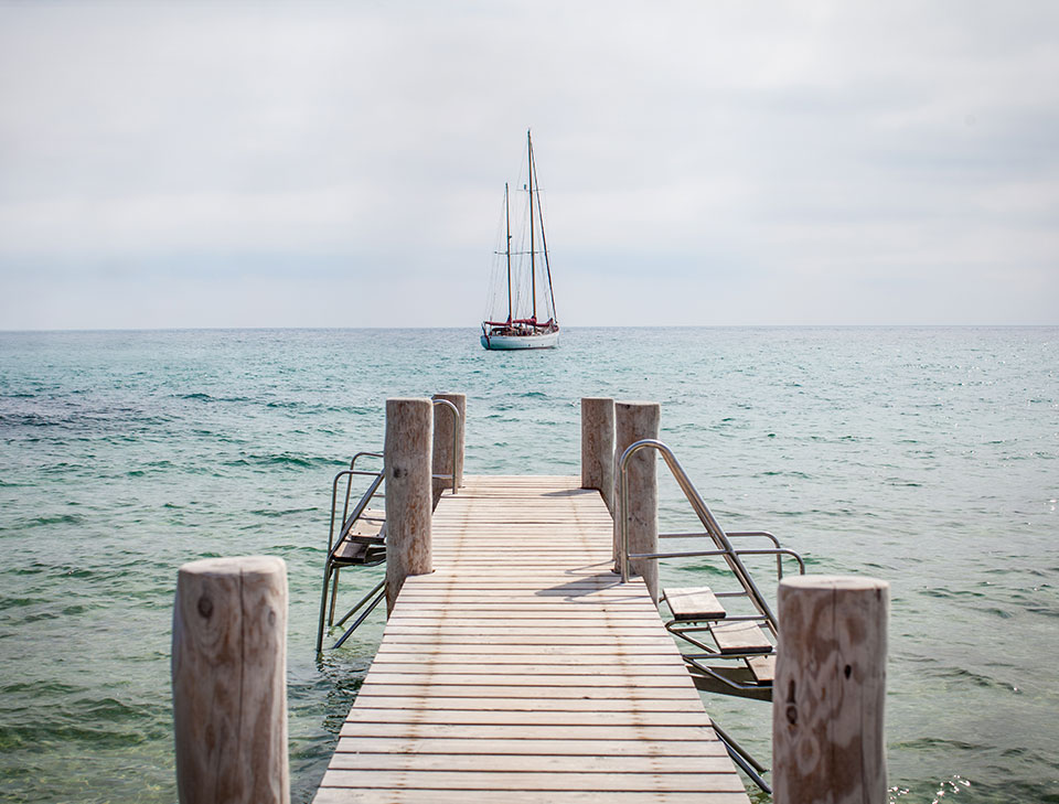 Tucked in the dunes just behind the beach, with its serene, pale Provençal blue theme, this place is as much about the setting as it is the food. Their crudités are legendary.