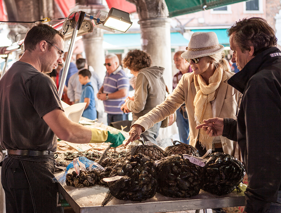 The Rialto market is spectacularly situated on the Grand Canal. It’s where the true Venetians come for all their fresh produce.