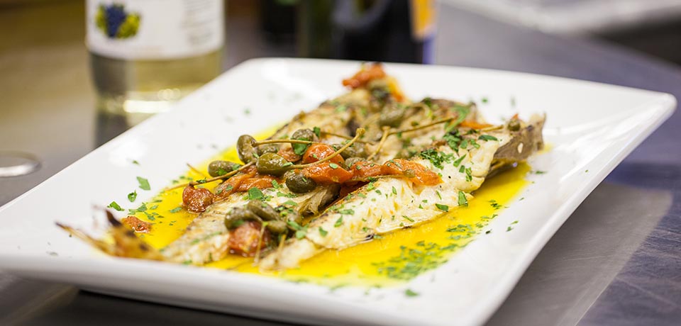 5. Pour a generous splash of prosecco over the fish.