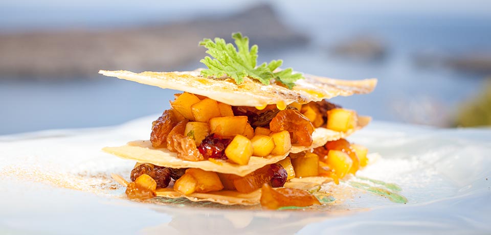 16. To assemble, place one piece of filo on the plate, then top with about 2 tablespoons of the fruit mixture.