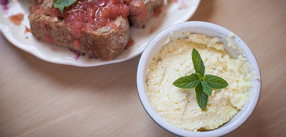 1. With a fork, mash the feta into a paste, adding olive oil to loosen.