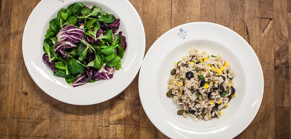 "A perfect way to deal with left-over rice, this dish works well with shellfish or canned tuna. I also like to add pine nuts and currants."